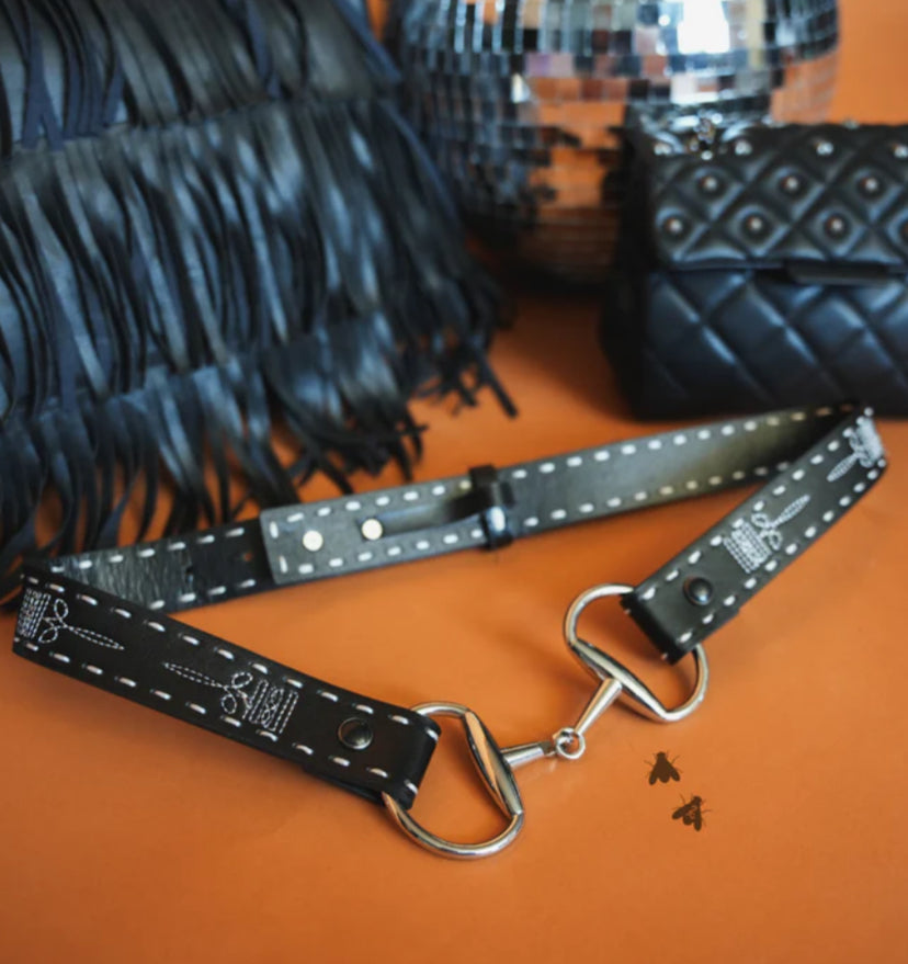 Pearl snap in place to unsnap at bit to be able to slide through belt loop