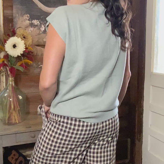 Dusty blue sweater vest with cap sleeve