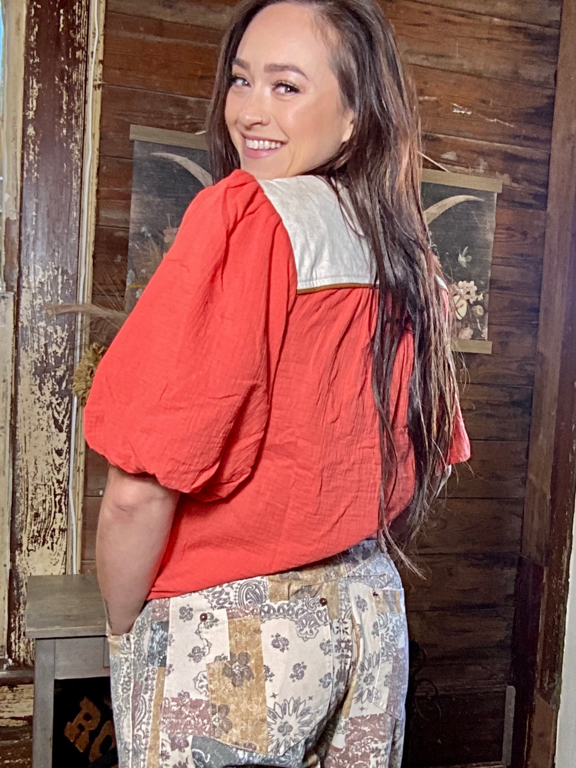 Cherry orange THML embroidered blouse