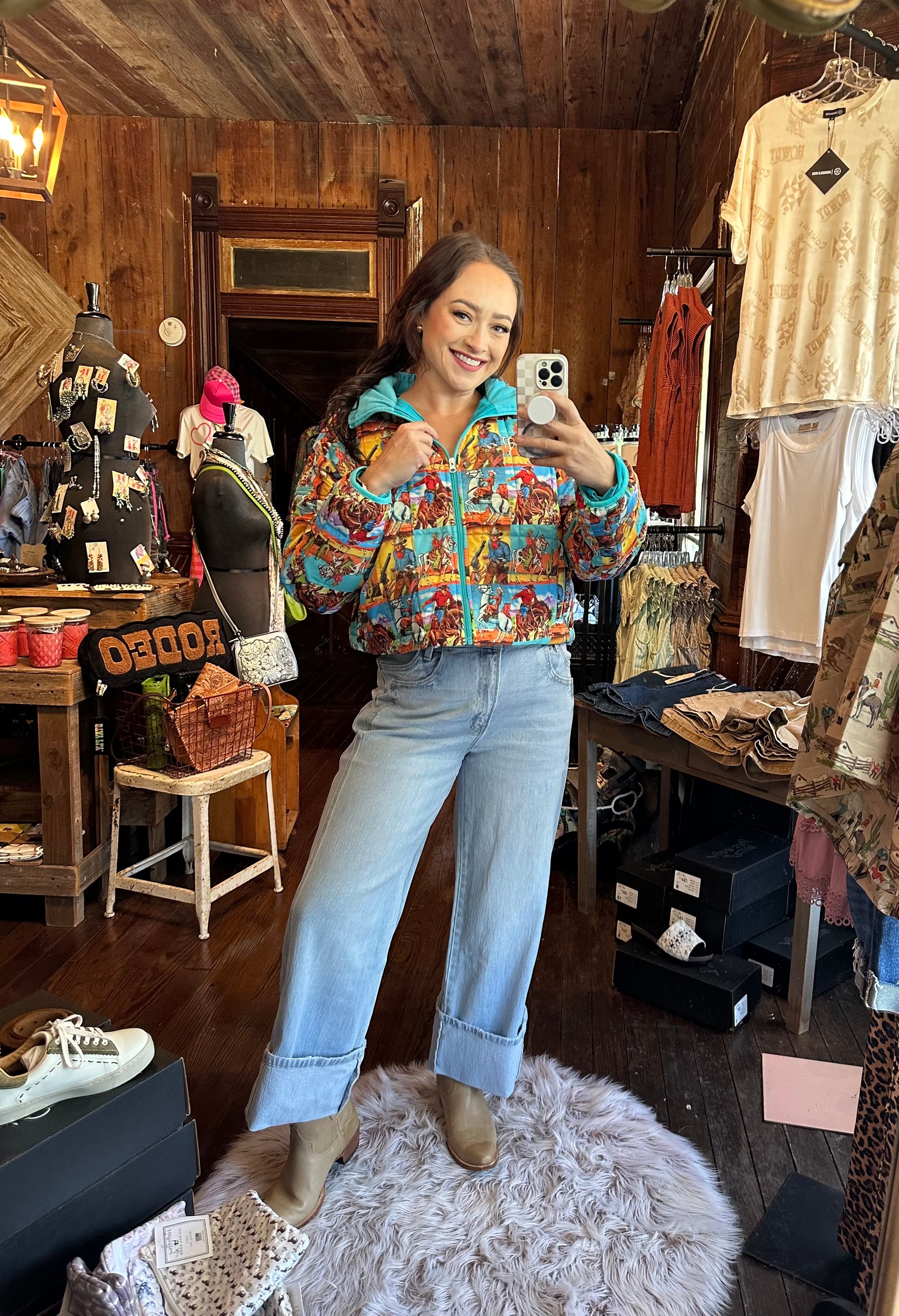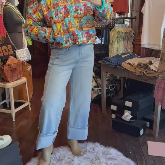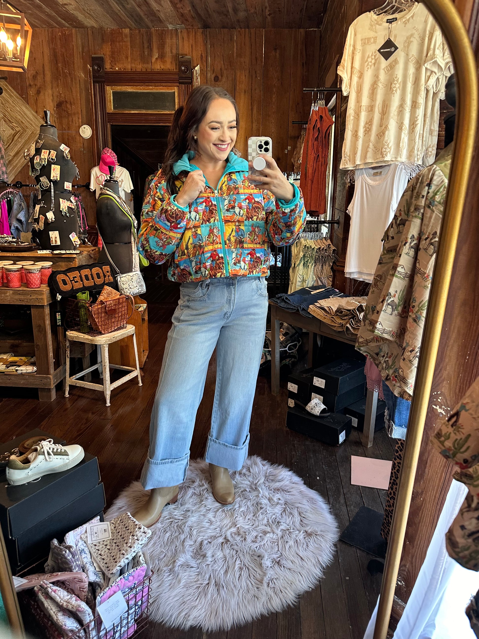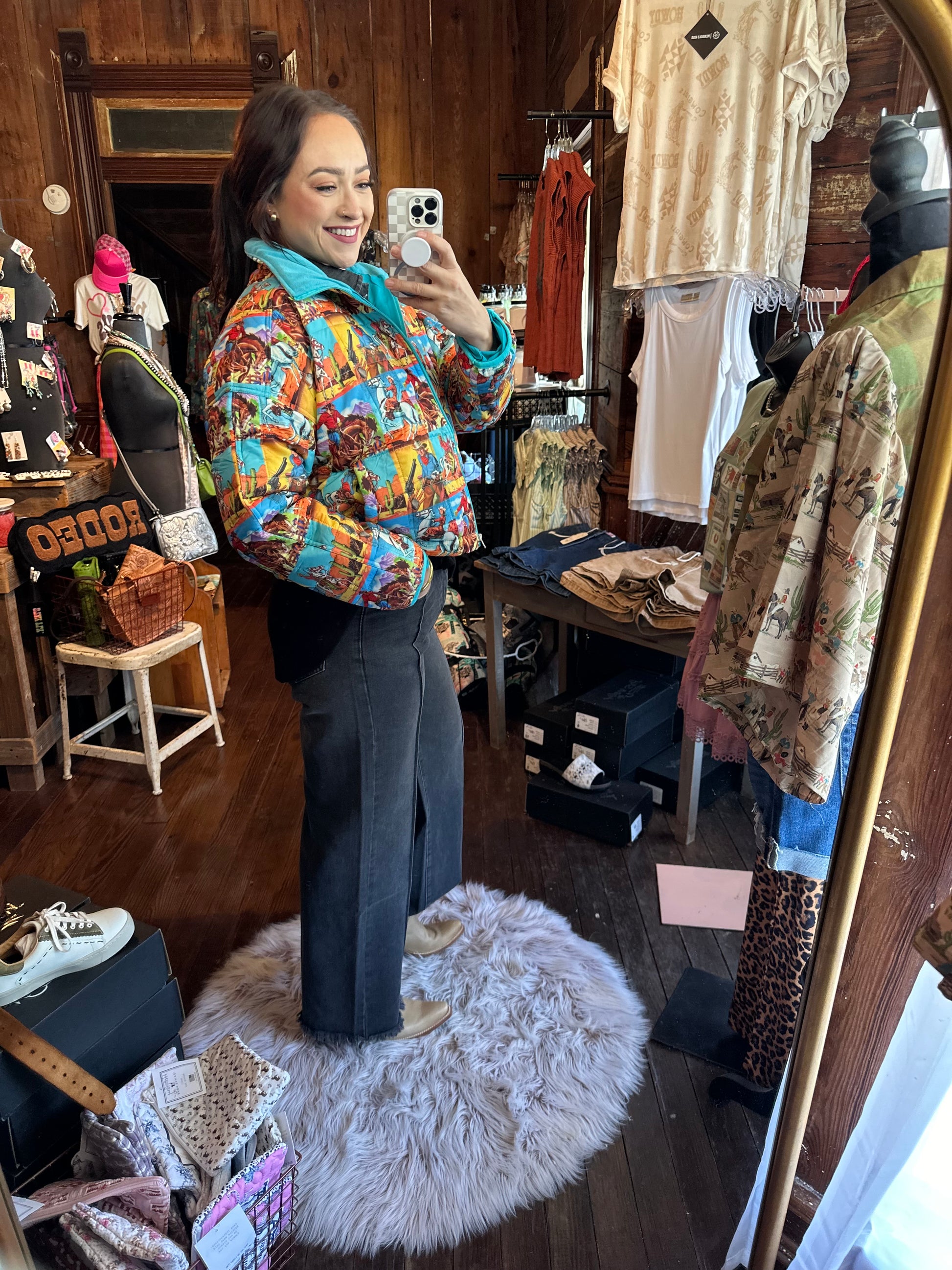 If you love fun and bright then this cropped puff jacket is right up your alley.