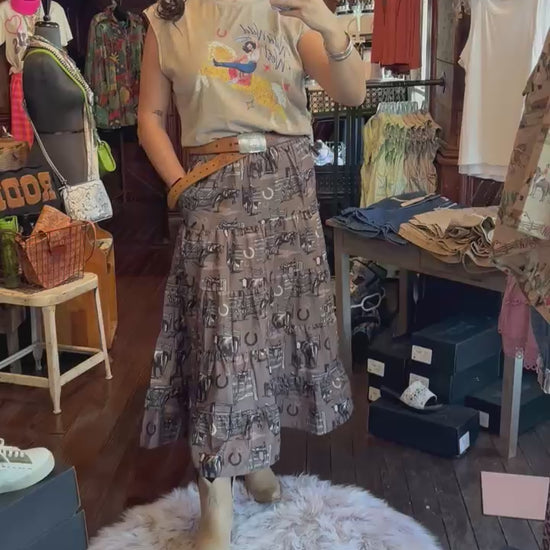 Western print tiered maxi skirt with pockets 🥰🥰